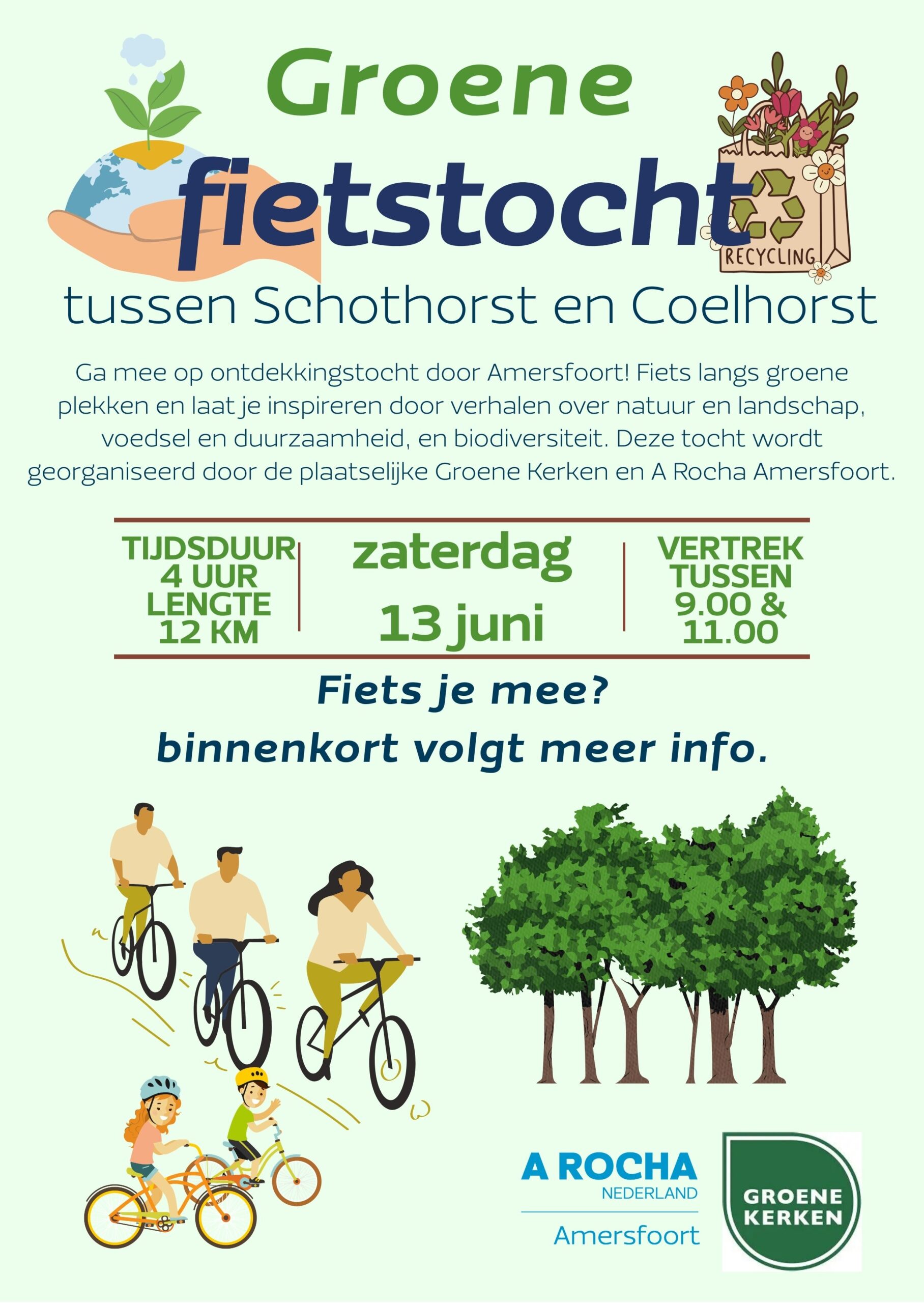 Ga mee op ontdekkingstocht door Amersfoort! Fiets langs groene plekken en laat je inspireren door verhalen over natuur en landschap, voedsel en duurzaamheid, en biodiversiteit. Deze tocht wordt georganiseerd door de plaatselijke Groene Kerken en A Rocha Amersfoort.